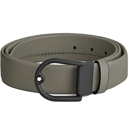 Кожаный ремень 35 мм из кожи серого цвета, пряжка в форме подковы от магазина премиальных ручек Premium Pens в Раменском.